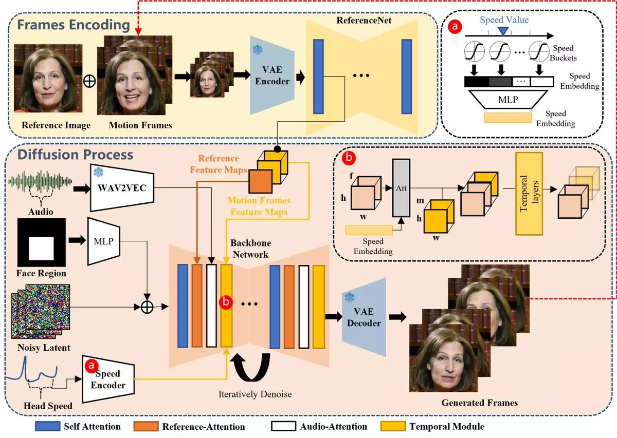 Araştırmacılar, yapay zekâ modelinin özünde iki kısımdan oluştuğunu belirtiyor. Bunlardan biri, görseli tanımlayıp referans görselden yola çıkarak hareketli kareleri oluşturuyor. Diğeri ise ses dosyasını tanımlayarak anahtar noktaları belirliyor. Sonrasında da anahtar noktalar ile görseller eşleştiriliyor. Yapay zekânın iki de denetim modülü bulunuyor. Bunlardan biri, görseldeki karakterin değişmeden kaldığına güvenli olurken diğeri ise sesi denetim ediyor. Her iki taraftan gelen sonuçlar ondan sonra birleştiriliyor.
