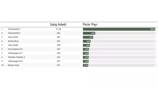 Tesla, %34’lük pazar payıyla bu ayın açık ara lideri oldu. Bilhassa Model Y modeli, Norveç’te adeta yeni “halk otomobili” haline geldi. Volkswagen ve Volvo ise onu takip etti.